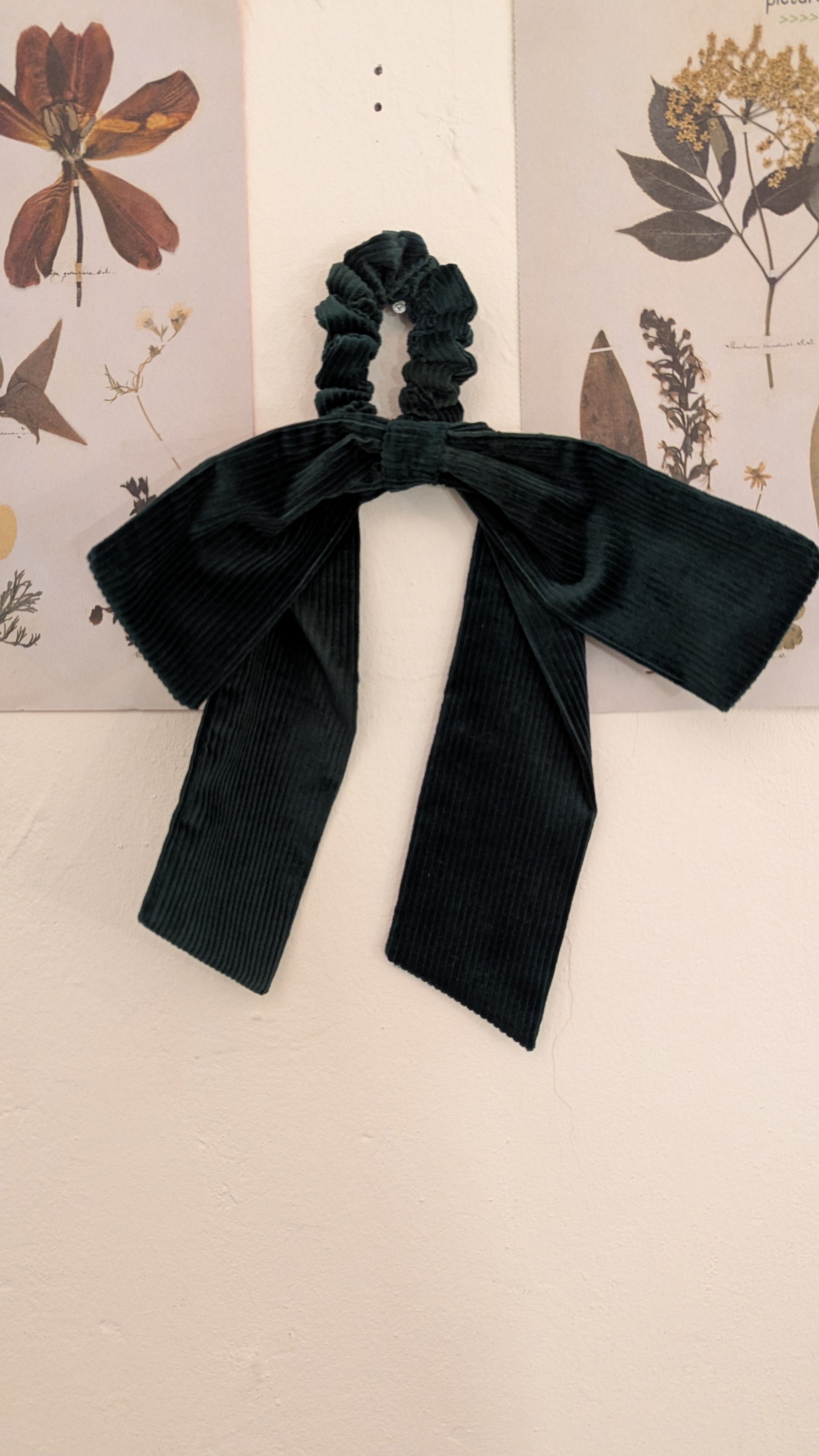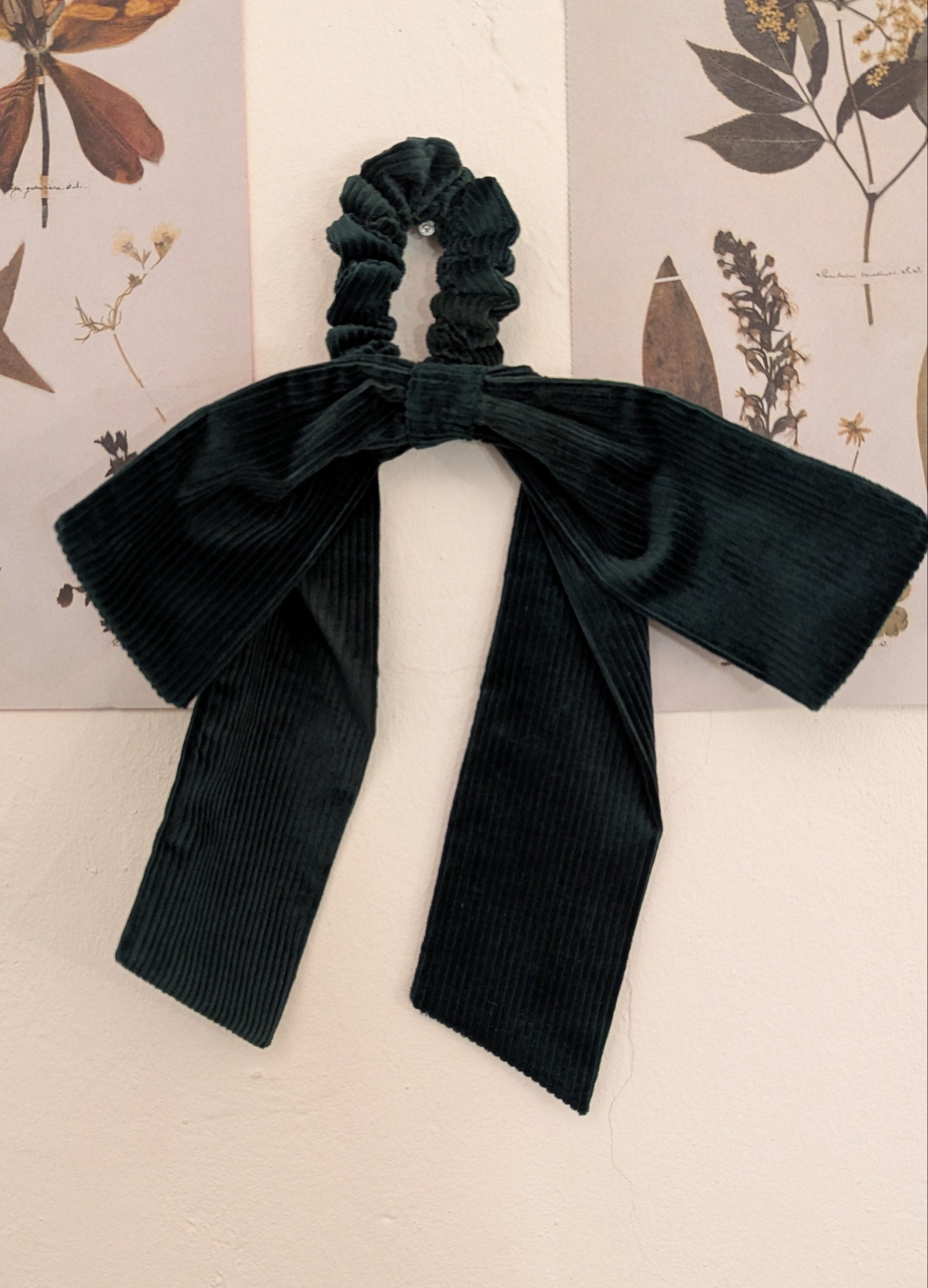 Scrunchie fiocco, in velluto e lana. Realizzati con rimanenze di tessuto che utilizzo per altri capi e progetti.